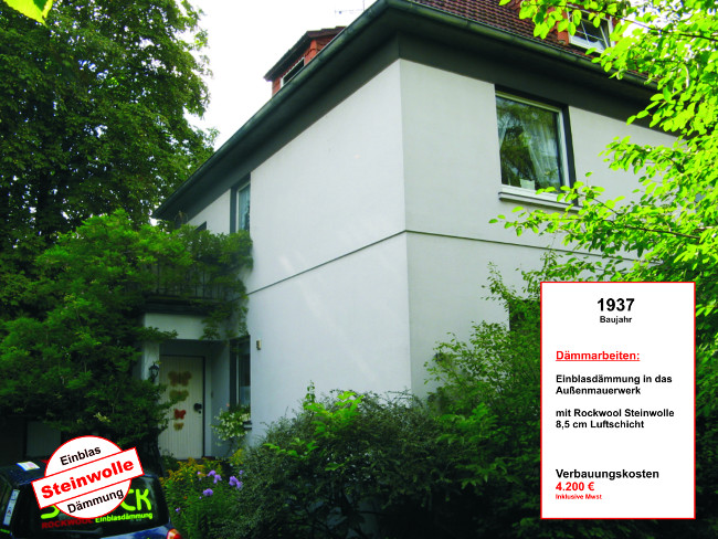 Die unten aufgeführten Preisbeispiele beziehen sich auf vor längerer Zeit verfüllte Wohnhäuser. Aufgrund der allgemeinen Teuerung sind die Preise teilweise nicht mehr ganz aktuell. Auf Anfrage teilen wir Ihnen gerne den Preis für das Dämmen Ihres Hauses mit.