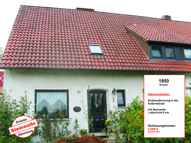 Wenn Sie sich zusätzlich über Referenzaussagen von Hauseigentümern informieren möchten, dann schauen Sie bitte in dem Klappmenü weiter unten nach „Referenzen Einblasdämmung“. Sie finden dort nach Postleitzahlen sortiert viele verbaute Objekte und Aussagen von Hauseigentümern!